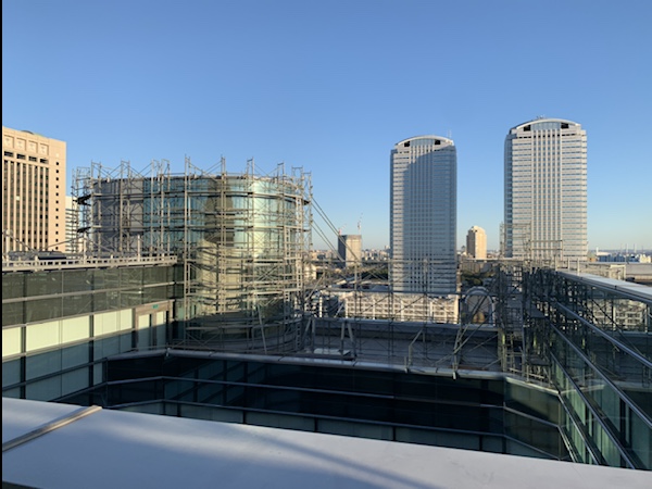 幕張での足場解体工事、及び2工区B階段廻りでの足場組立工事の進捗状況です。