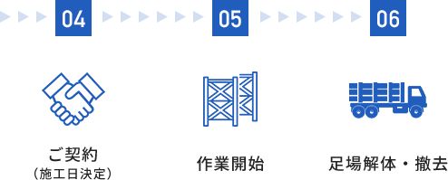 改修工事は新築工事に比べ工期が短いため、組立・解体・撤収を素早く完了できるものを使用します。